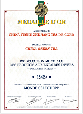 “獅峰牌”龍井茶獲世界優(yōu)質(zhì)食品博覽會(huì )金棕櫚獎、浙江省著(zhù)名商標、浙江出口名牌