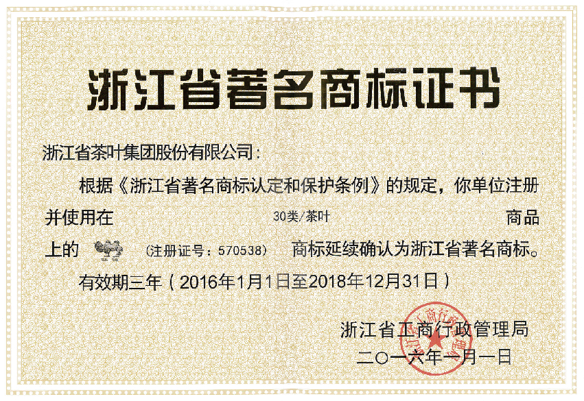 “駱駝牌”榮獲全國茶葉行業(yè)唯一的“中國出口名牌”、連續七屆浙江省著(zhù)名商標